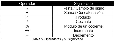 5.2 OPERACIONES Y TIPOS DE OPERADORES