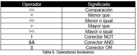 - Operadores booleanos: