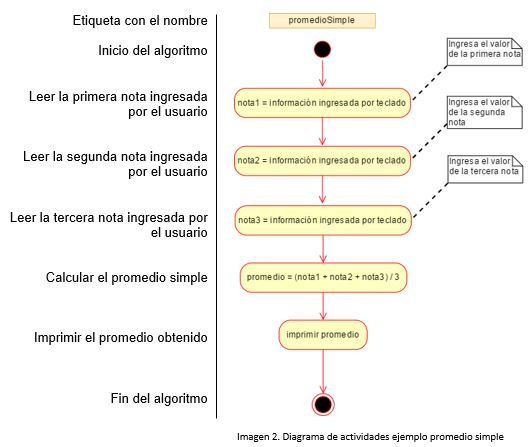 Como puedes evidenciar, en este ejemplo se describen cada uno de los pasos que se deben realizar para calcular el promedio simple de tres valores numéricos ingresados respondiendo a los requerimientos establecidos para el desarrollo de nuestro software lo cual correspondería a un algoritmo.
