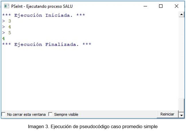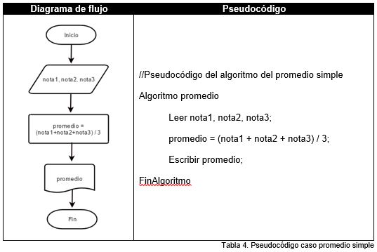 Existen más expresiones, pero se considera que estas son las más básicas. Ahora bien, teniendo en cuenta esto, si nos guiamos por el diagrama de flujo del caso del promedio simple abordado en las sesiones anteriores, el pseudocódigo sería el siguiente: